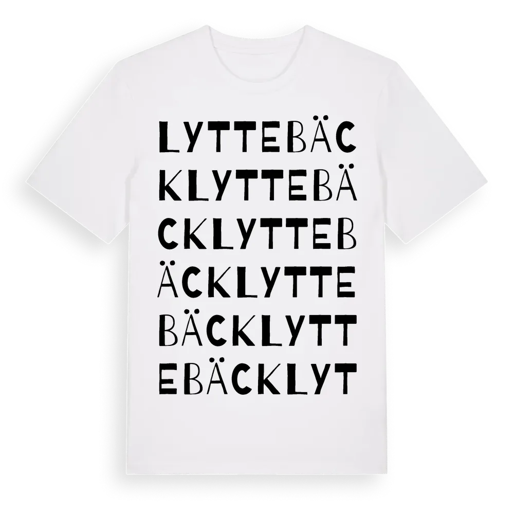 Lyttebäck ordlek t-shirt är inspirerad av byn Lyttebäck i Örebro län, Sverige. Tröjan är designad för dig som har en speciell koppling till platsen – oavsett om du bor här, har rötterna här eller bara älskar Lyttebäck.