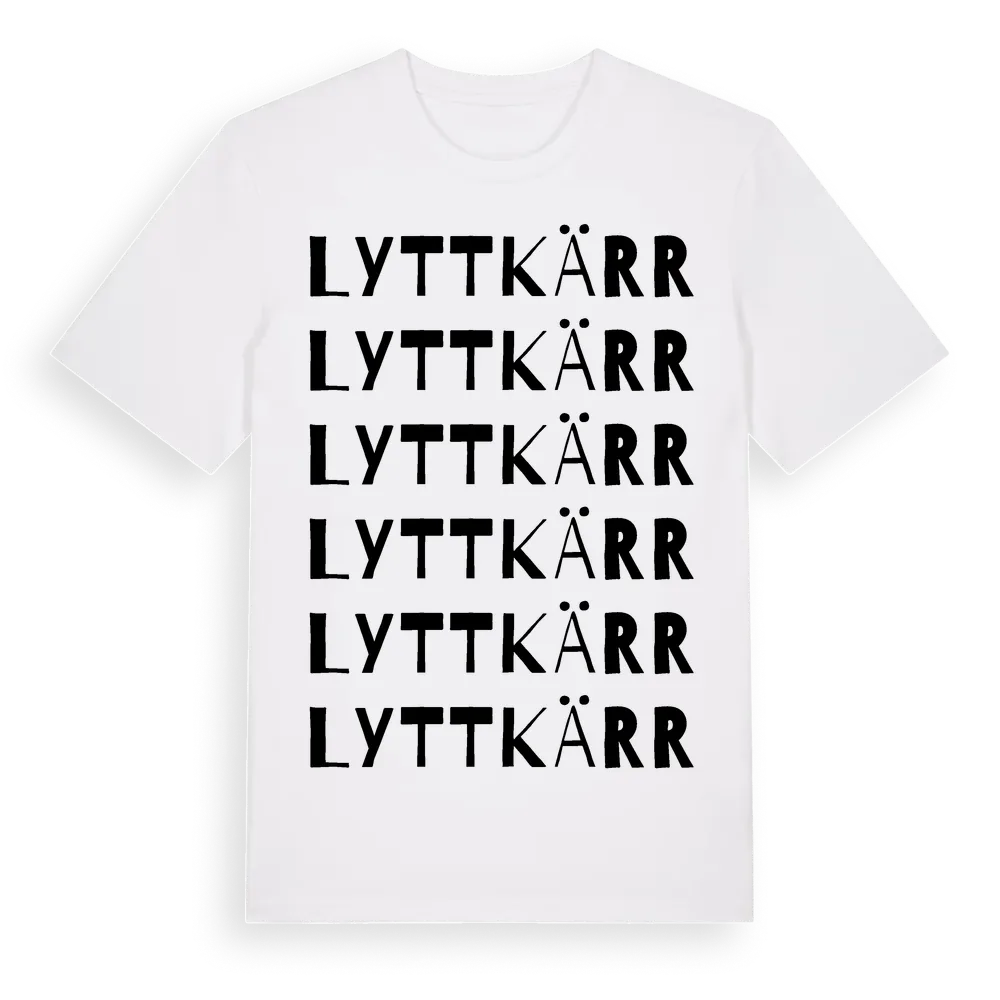En ordlek byggd på Lyttkärrs namn. Subtilt och klurig – ett motiv som bara de som verkligen känner platsen fullt ut förstår. Premium bomull, unisex – från Lyttkärr i Örebro län.