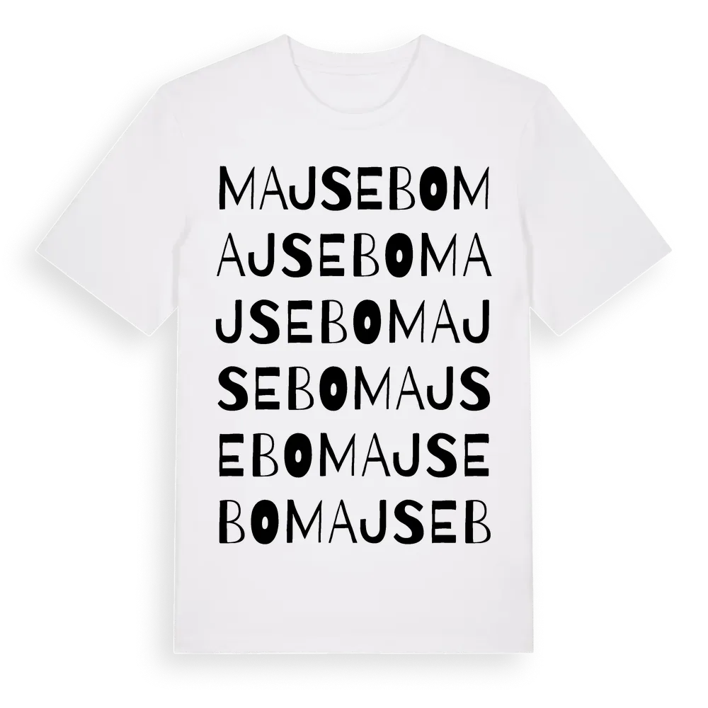 Majsebo ordlek t-shirt är inspirerad av Majsebo i Örebro län, Sverige. Tröjan är designad för dig som har en speciell koppling till platsen – oavsett om du bor här, har rötterna här eller bara älskar Majsebo.