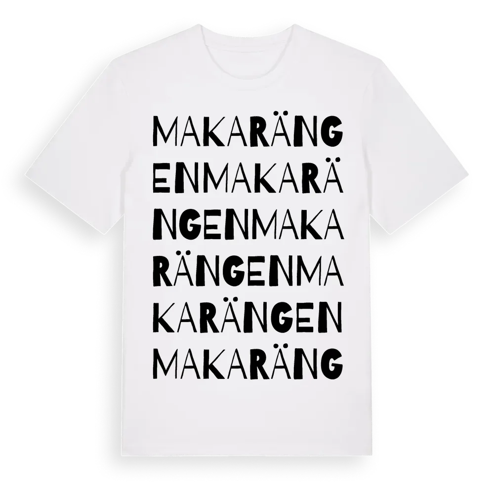 Makarängen ordlek t-shirt är inspirerad av Makarängen i Örebro län, Sverige. Tröjan är designad för dig som har en speciell koppling till platsen – oavsett om du bor här, har rötterna här eller bara älskar Makarängen.