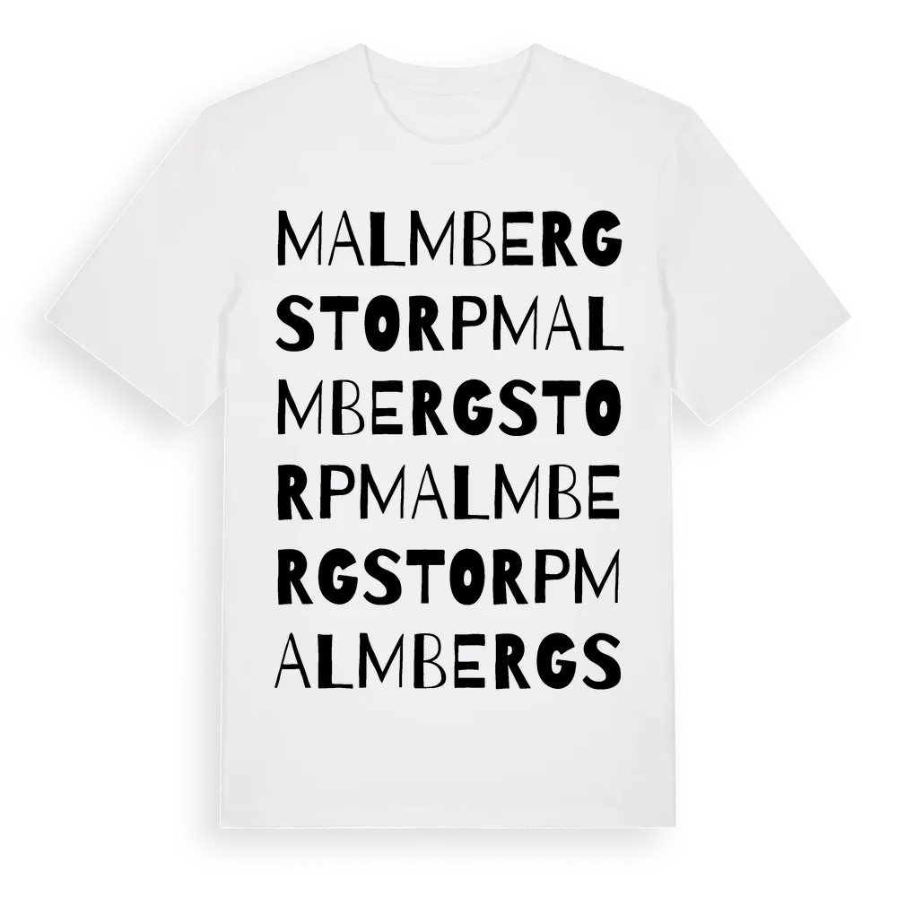 Malmbergstorp ordlek t-shirt är inspirerad av Malmbergstorp i Örebro län, Sverige. Tröjan är designad för dig som har en speciell koppling till platsen – oavsett om du bor här, har rötterna här eller bara älskar Malmbergstorp.