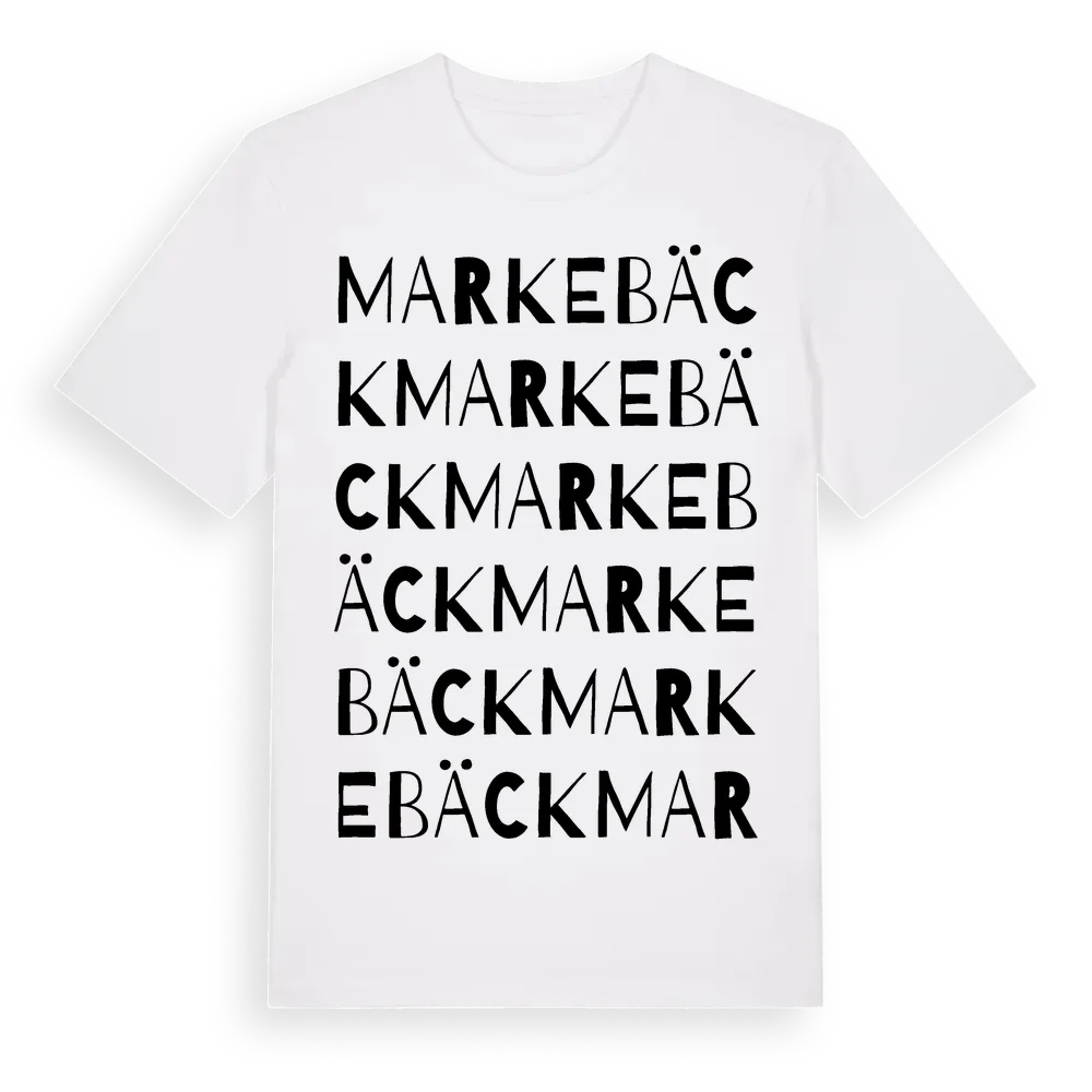 Markebäck ordlek t-shirt är inspirerad av Markebäck i Örebro län, Sverige. Tröjan är designad för dig som har en speciell koppling till platsen – oavsett om du bor här, har rötterna här eller bara älskar Markebäck.