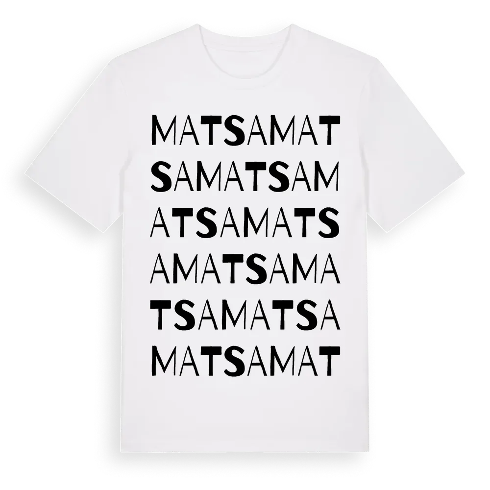 Matsa ordlek t-shirt är inspirerad av Matsa i Örebro län, Sverige. Tröjan är designad för dig som har en speciell koppling till platsen – oavsett om du bor här, har rötterna här eller bara älskar Matsa.