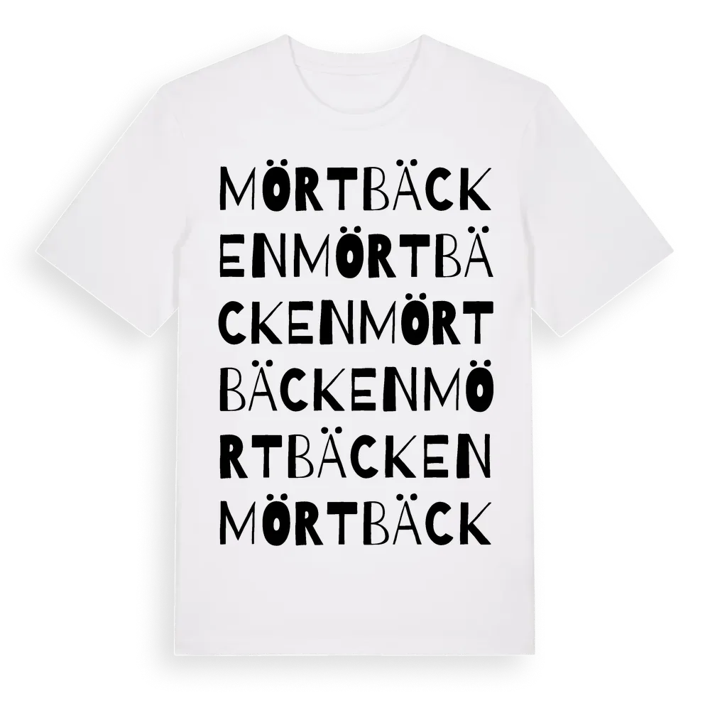 Mörtbäcken ordlek t-shirt är inspirerad av byn Mörtbäcken i Örebro län, Sverige. Tröjan är designad för dig som har en speciell koppling till platsen – oavsett om du bor här, har rötterna här eller bara älskar Mörtbäcken.