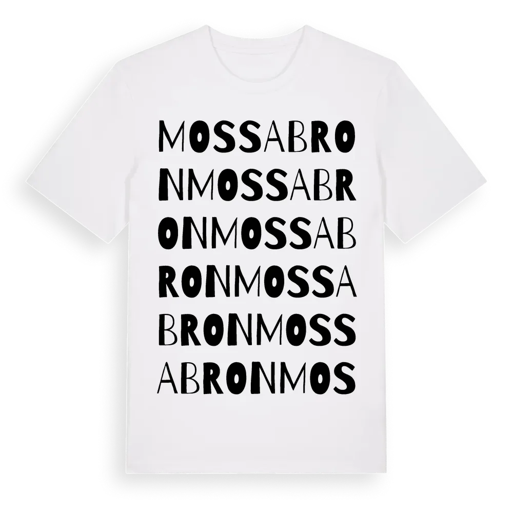 Mossabron ordlek t-shirt är inspirerad av Mossabron i Örebro län, Sverige. Tröjan är designad för dig som har en speciell koppling till platsen – oavsett om du bor här, har rötterna här eller bara älskar Mossabron.