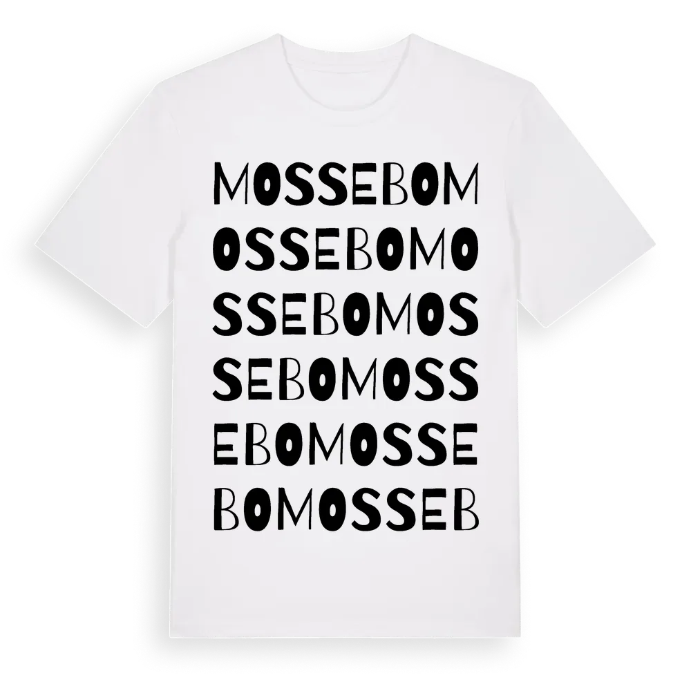 Mossebo ordlek t-shirt är inspirerad av byn Mossebo i Örebro län, Sverige. Tröjan är designad för dig som har en speciell koppling till platsen – oavsett om du bor här, har rötterna här eller bara älskar Mossebo.