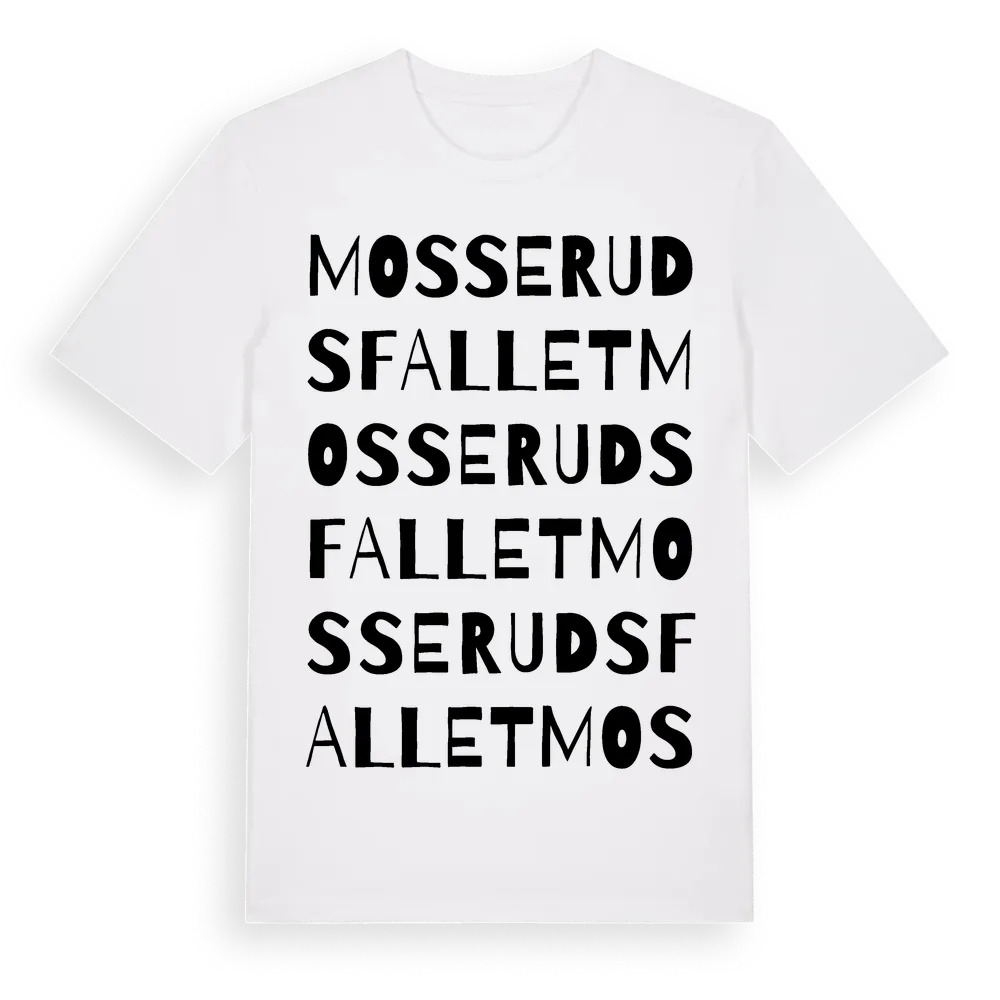 Mosserudsfallet ordlek t-shirt är inspirerad av Mosserudsfallet i Örebro län, Sverige. Tröjan är designad för dig som har en speciell koppling till platsen – oavsett om du bor här, har rötterna här eller bara älskar Mosserudsfallet.