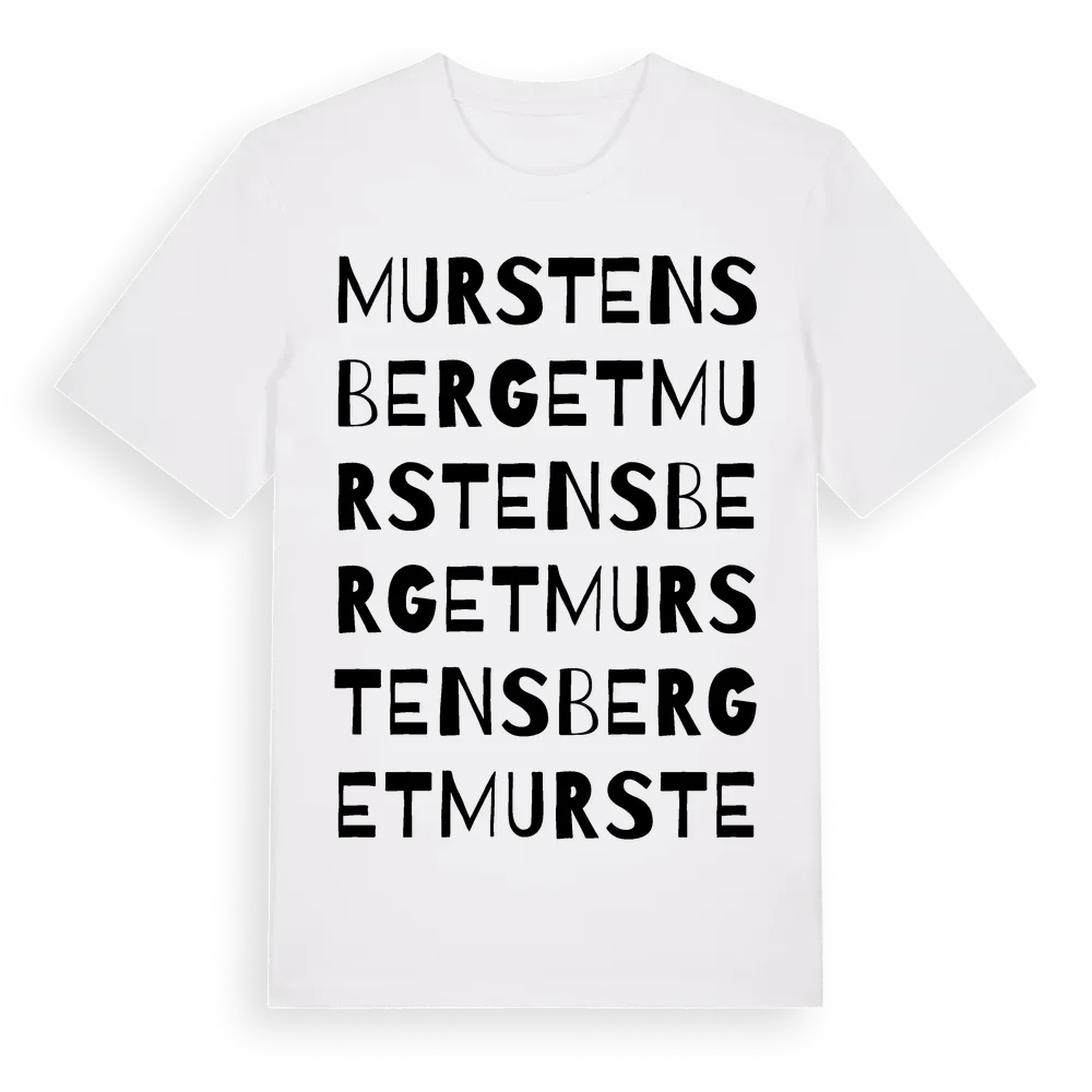 Murstensberget ordlek t-shirt är inspirerad av Murstensberget i Örebro län, Sverige. Tröjan är designad för dig som har en speciell koppling till platsen – oavsett om du bor här, har rötterna här eller bara älskar Murstensberget.