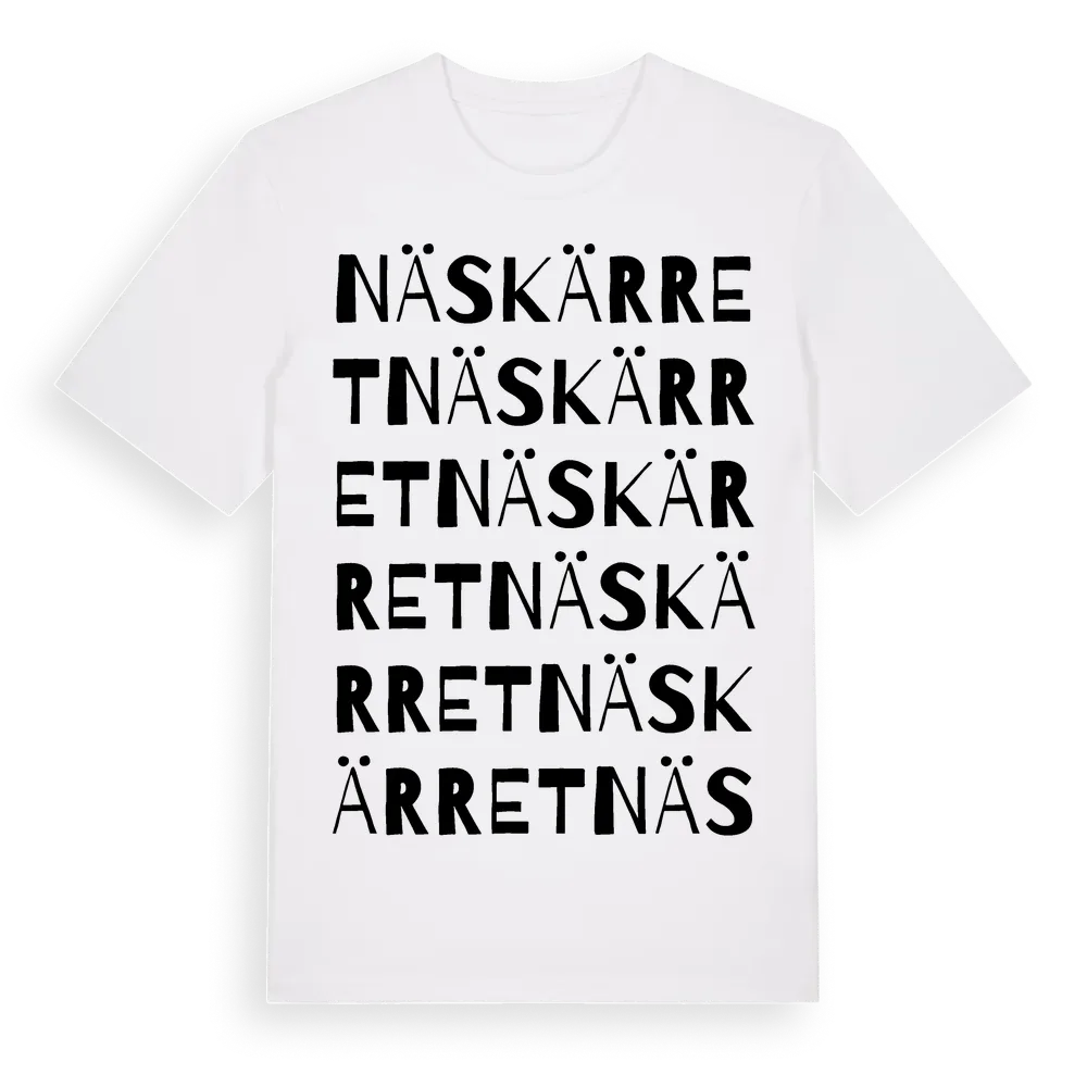 Näskärret ordlek t-shirt är inspirerad av Näskärret i Örebro län, Sverige. Tröjan är designad för dig som har en speciell koppling till platsen – oavsett om du bor här, har rötterna här eller bara älskar Näskärret.