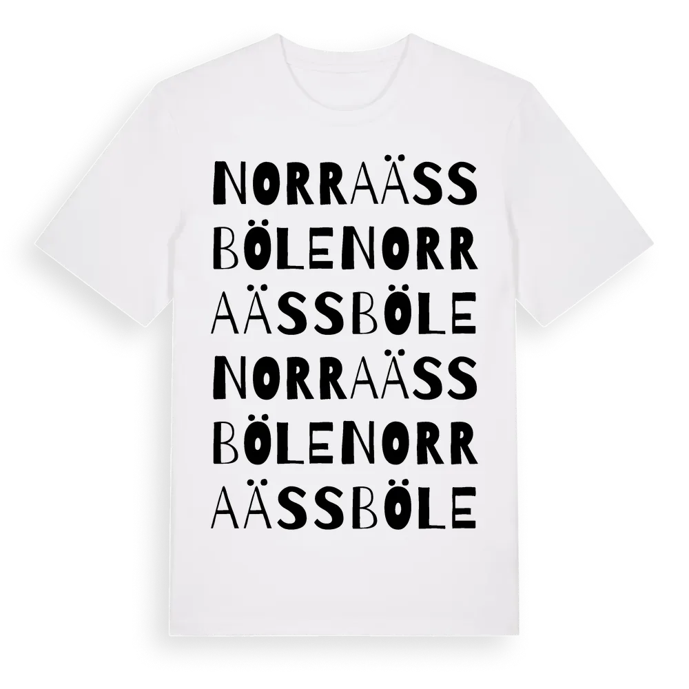 Norra Ässböle ordlek t-shirt är inspirerad av Norra Ässböle i Örebro län, Sverige. Tröjan är designad för dig som har en speciell koppling till platsen – oavsett om du bor här, har rötterna här eller bara älskar Norra Ässböle.