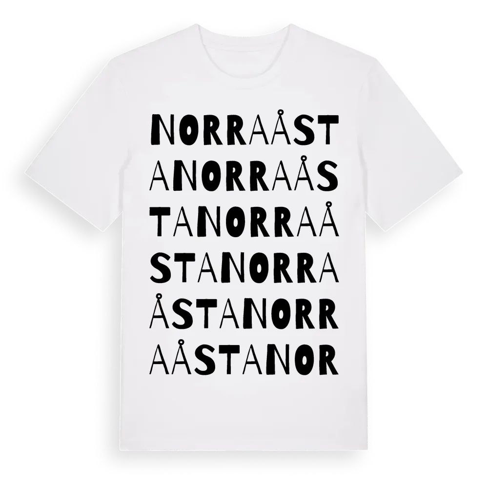 Norra Åsta ordlek t-shirt är inspirerad av byn Norra Åsta i Örebro län, Sverige. Tröjan är designad för dig som har en speciell koppling till platsen – oavsett om du bor här, har rötterna här eller bara älskar Norra Åsta.