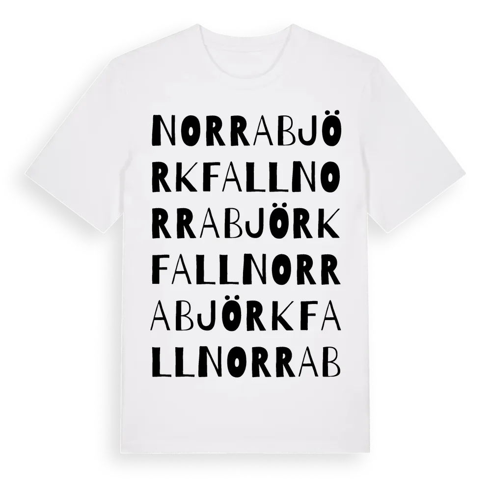 Norra Björkfall ordlek t-shirt är inspirerad av Norra Björkfall i Örebro län, Sverige. Tröjan är designad för dig som har en speciell koppling till platsen – oavsett om du bor här, har rötterna här eller bara älskar Norra Björkfall.