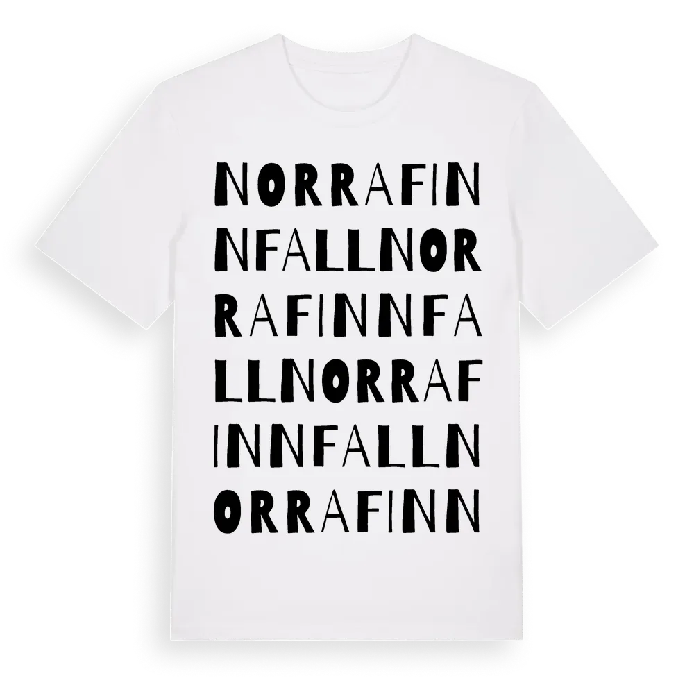 Norra Finnfall ordlek t-shirt är inspirerad av byn Norra Finnfall i Örebro län, Sverige. Tröjan är designad för dig som har en speciell koppling till platsen – oavsett om du bor här, har rötterna här eller bara älskar Norra Finnfall.