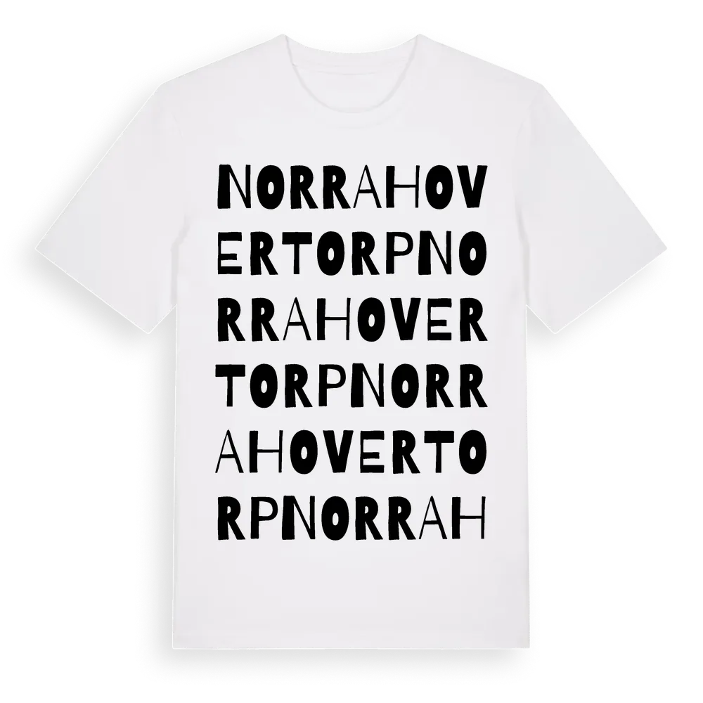 Norra Hovertorp ordlek t-shirt är inspirerad av stadsdelen Norra Hovertorp i Örebro län, Sverige. Tröjan är designad för dig som har en speciell koppling till platsen – oavsett om du bor här, har rötterna här eller bara älskar Norra Hovertorp.
