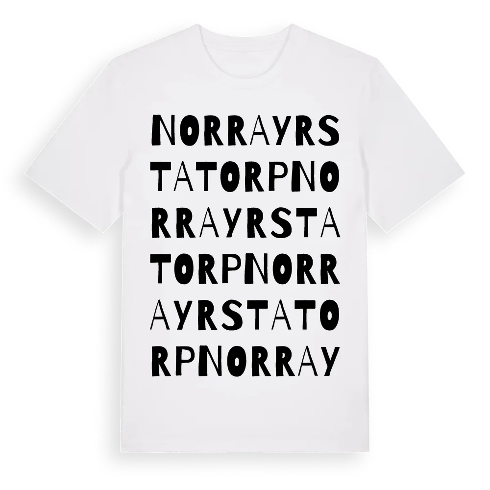 Norra Yrstatorp ordlek t-shirt är inspirerad av Norra Yrstatorp i Örebro län, Sverige. Tröjan är designad för dig som har en speciell koppling till platsen – oavsett om du bor här, har rötterna här eller bara älskar Norra Yrstatorp.
