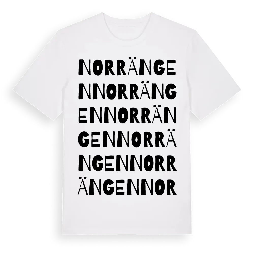 Norrängen ordlek t-shirt är inspirerad av Norrängen i Örebro län, Sverige. Tröjan är designad för dig som har en speciell koppling till platsen – oavsett om du bor här, har rötterna här eller bara älskar Norrängen.