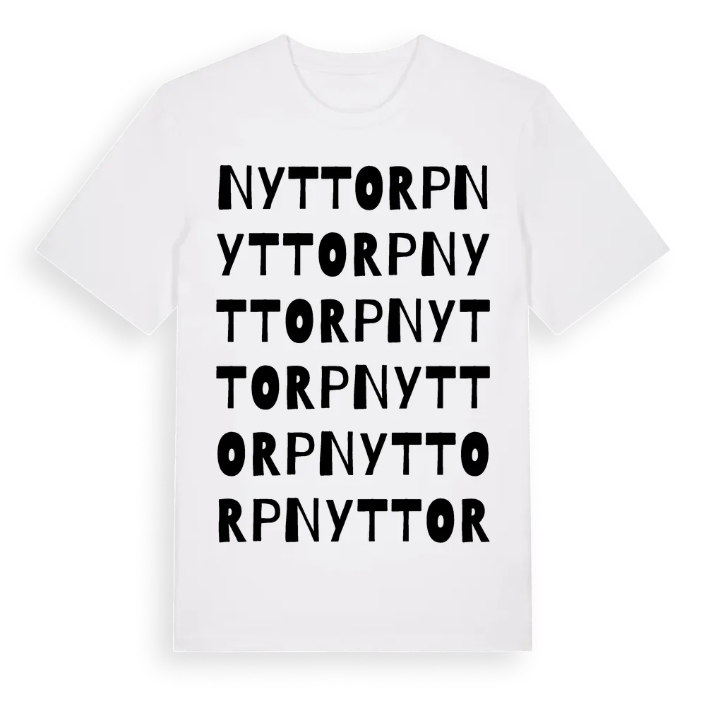 Nyttorp ordlek t-shirt är inspirerad av Nyttorp i Örebro län, Sverige. Tröjan är designad för dig som har en speciell koppling till platsen – oavsett om du bor här, har rötterna här eller bara älskar Nyttorp.