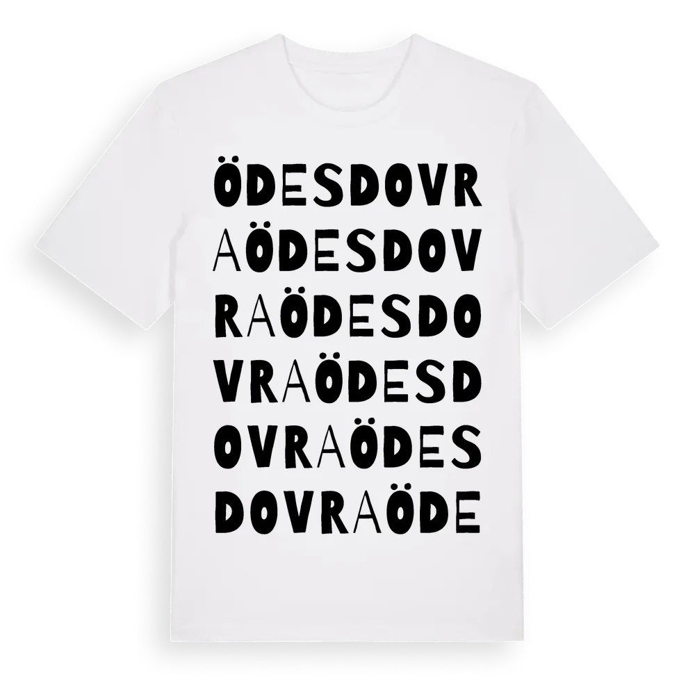 Ödesdovra ordlek t-shirt är inspirerad av byn Ödesdovra i Örebro län, Sverige. Tröjan är designad för dig som har en speciell koppling till platsen – oavsett om du bor här, har rötterna här eller bara älskar Ödesdovra.