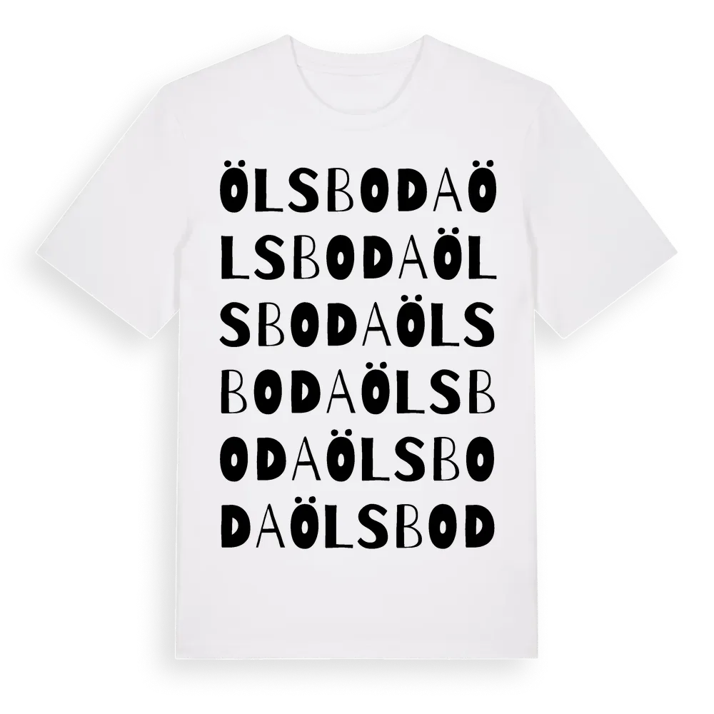 Ölsboda ordlek t-shirt är inspirerad av byn Ölsboda i Örebro län, Sverige. Tröjan är designad för dig som har en speciell koppling till platsen – oavsett om du bor här, har rötterna här eller bara älskar Ölsboda.