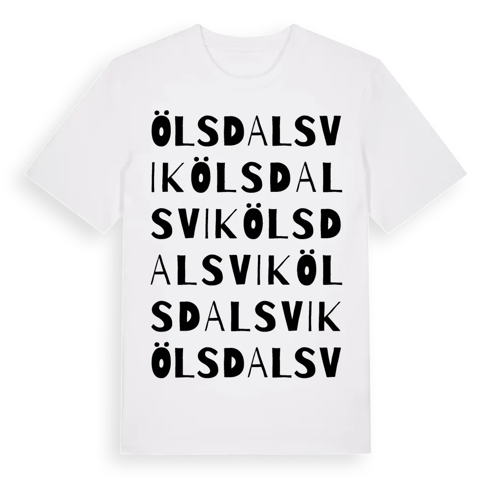 Ölsdalsvik ordlek t-shirt är inspirerad av Ölsdalsvik i Örebro län, Sverige. Tröjan är designad för dig som har en speciell koppling till platsen – oavsett om du bor här, har rötterna här eller bara älskar Ölsdalsvik.