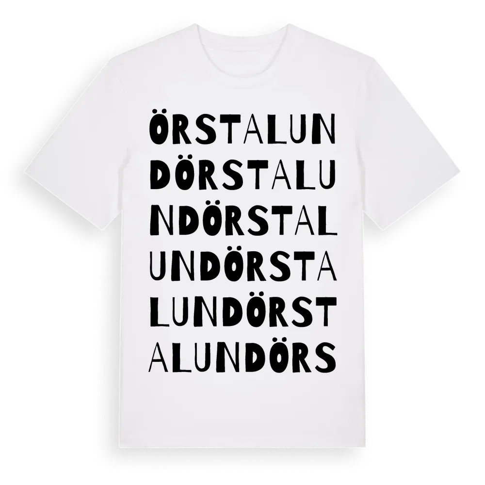 Örstalund ordlek t-shirt är inspirerad av Örstalund i Örebro län, Sverige. Tröjan är designad för dig som har en speciell koppling till platsen – oavsett om du bor här, har rötterna här eller bara älskar Örstalund.
