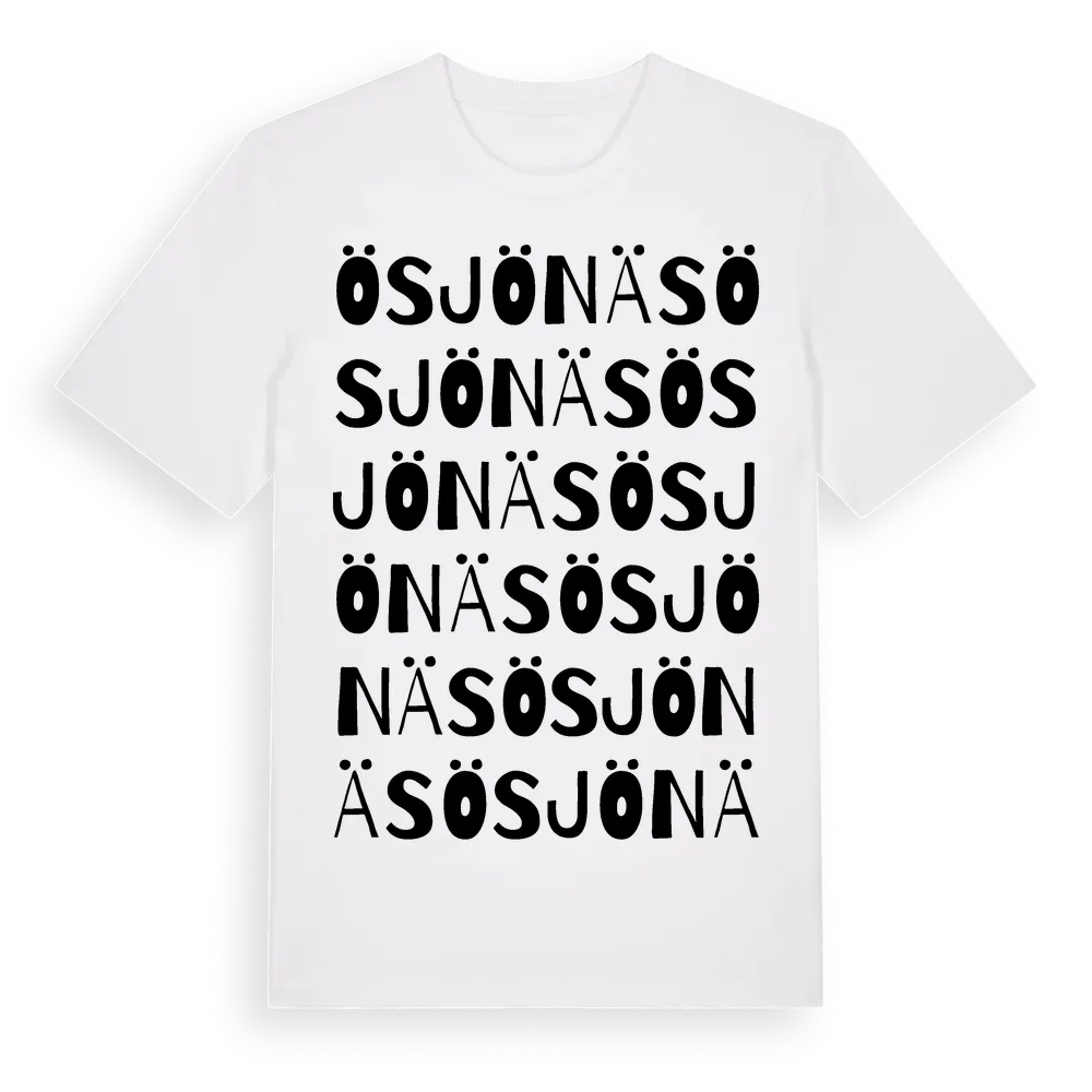 En ordlek byggd på Ösjönäss namn. Subtilt och klurig – ett motiv som bara de som verkligen känner platsen fullt ut förstår. Premium bomull, unisex – från Ösjönäs i Örebro län.
