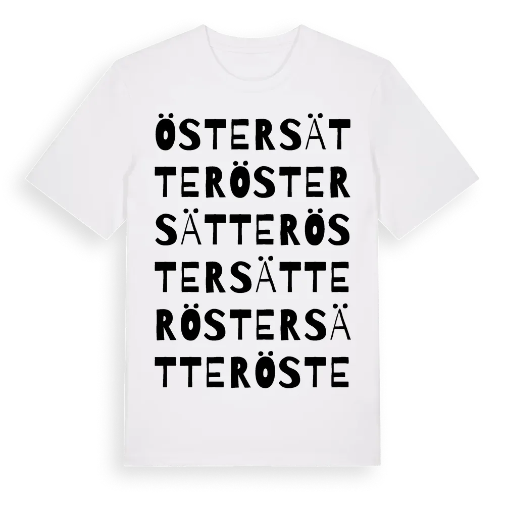 Östersätter ordlek t-shirt är inspirerad av Östersätter i Örebro län, Sverige. Tröjan är designad för dig som har en speciell koppling till platsen – oavsett om du bor här, har rötterna här eller bara älskar Östersätter.