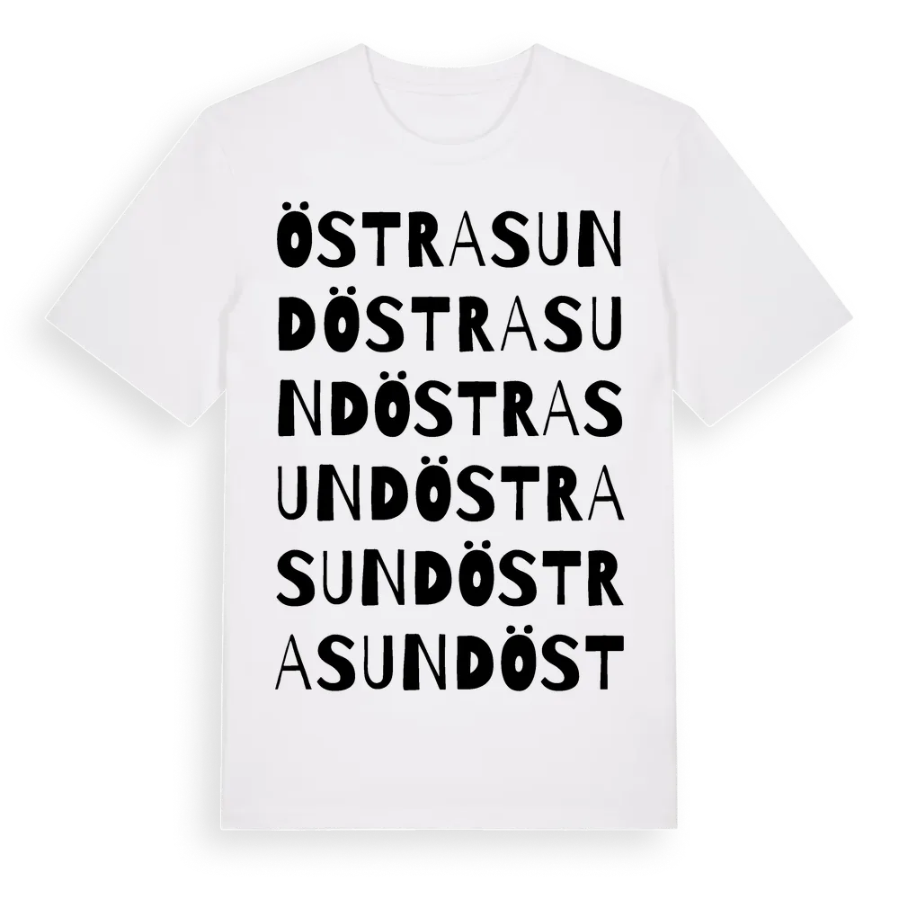 Östra Sund ordlek t-shirt är inspirerad av byn Östra Sund i Örebro län, Sverige. Tröjan är designad för dig som har en speciell koppling till platsen – oavsett om du bor här, har rötterna här eller bara älskar Östra Sund.
