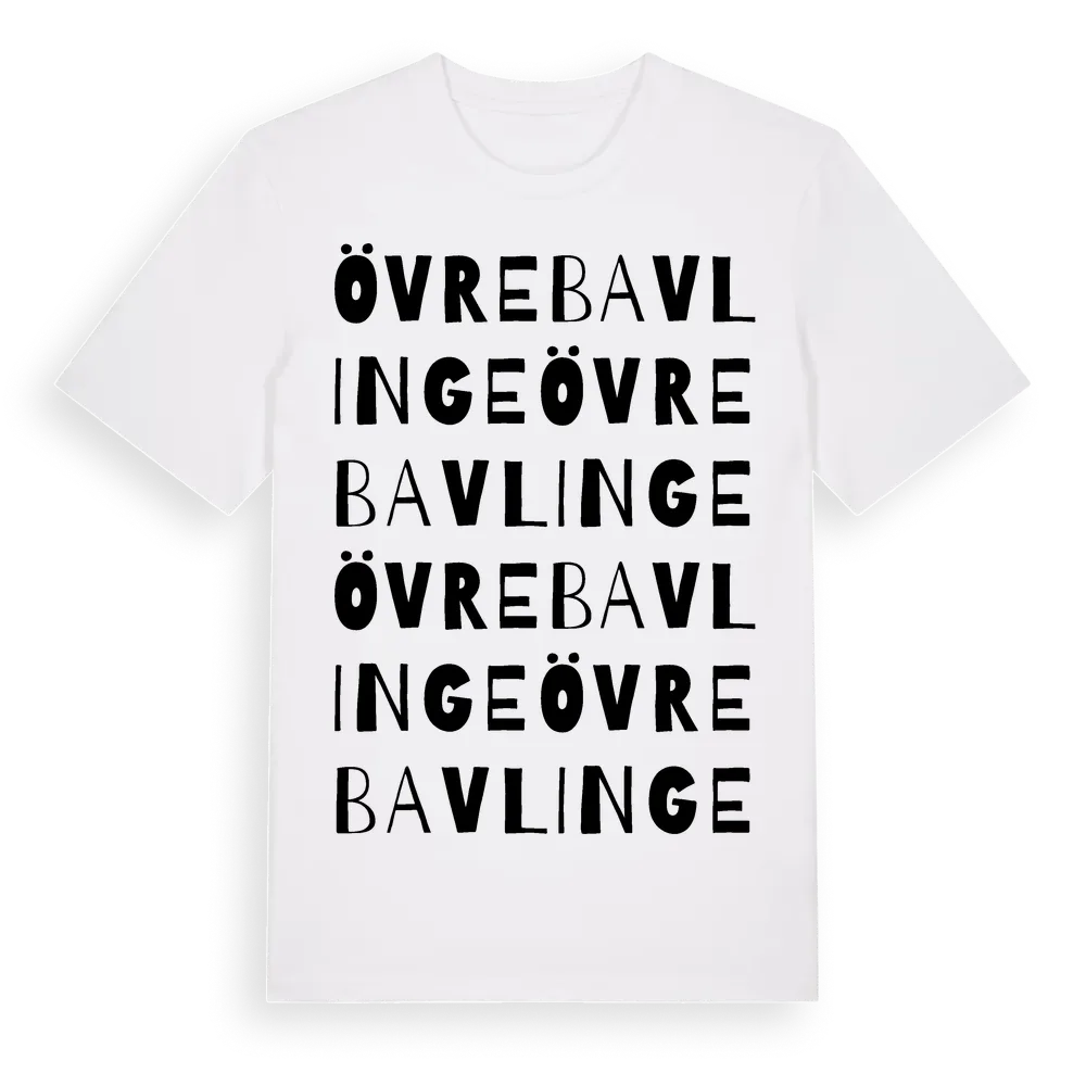 Övre Bavlinge ordlek t-shirt är inspirerad av Övre Bavlinge i Örebro län, Sverige. Tröjan är designad för dig som har en speciell koppling till platsen – oavsett om du bor här, har rötterna här eller bara älskar Övre Bavlinge.