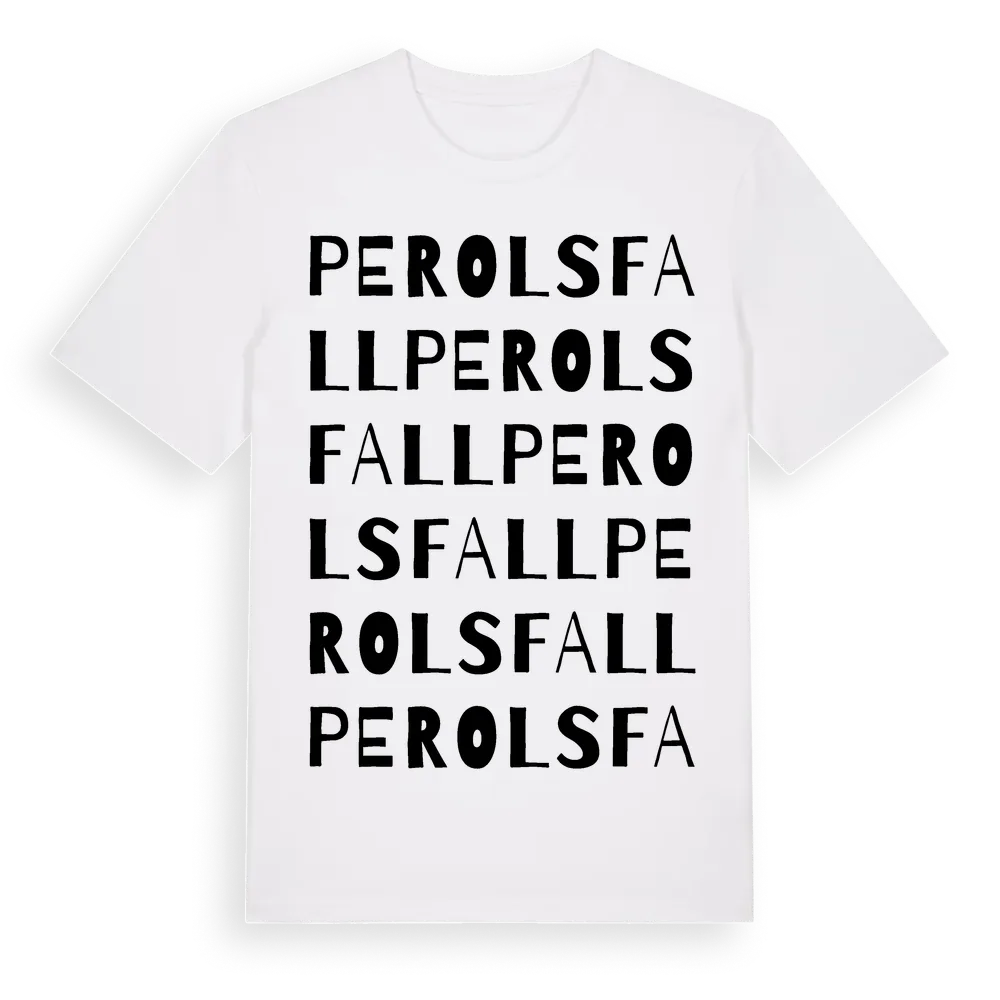 En ordlek byggd på Per Olsfalls namn. Subtilt och klurig – ett motiv som bara de som verkligen känner platsen fullt ut förstår. Premium bomull, unisex – från Per Olsfall i Örebro län.