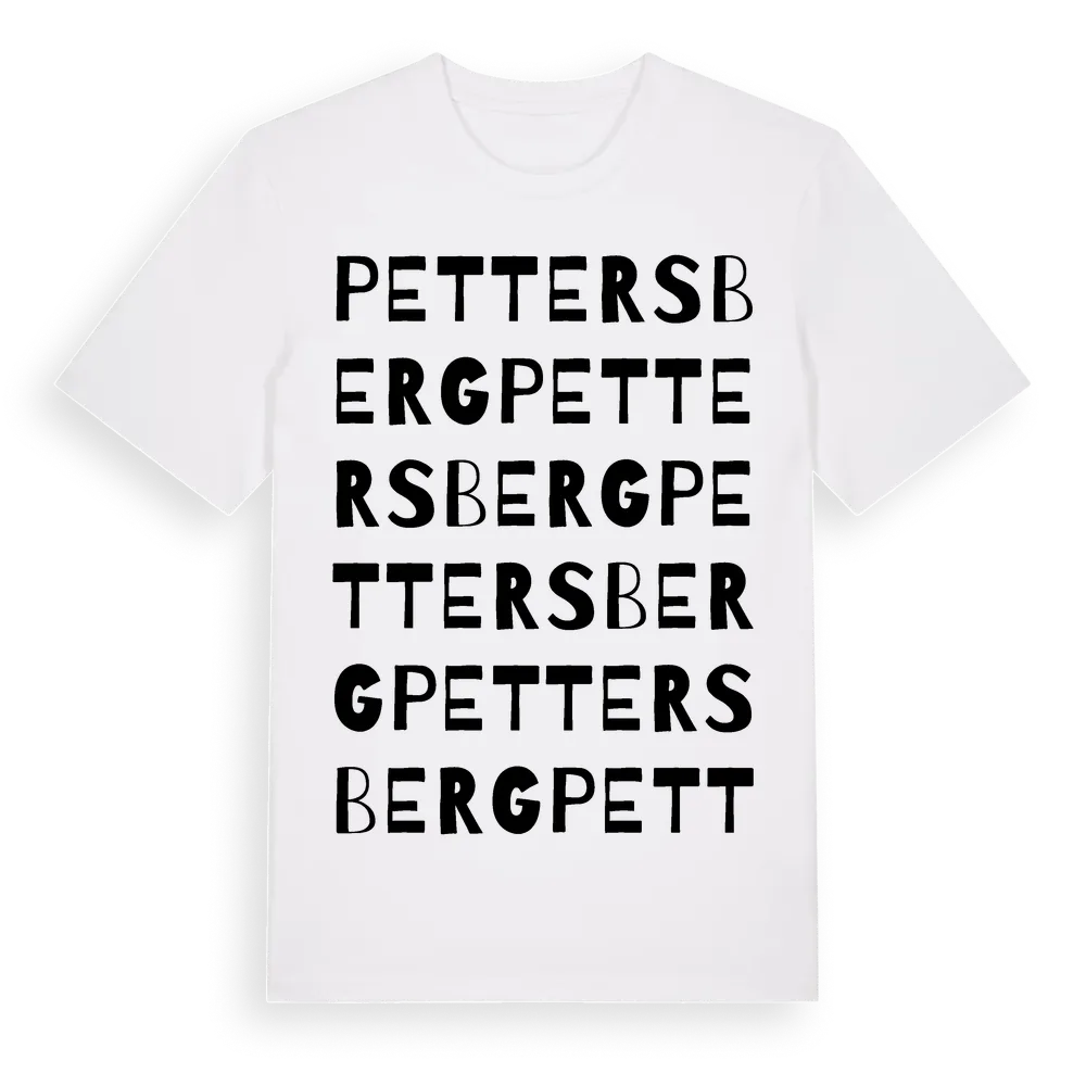 Pettersberg ordlek t-shirt är inspirerad av Pettersberg i Örebro län, Sverige. Tröjan är designad för dig som har en speciell koppling till platsen – oavsett om du bor här, har rötterna här eller bara älskar Pettersberg.