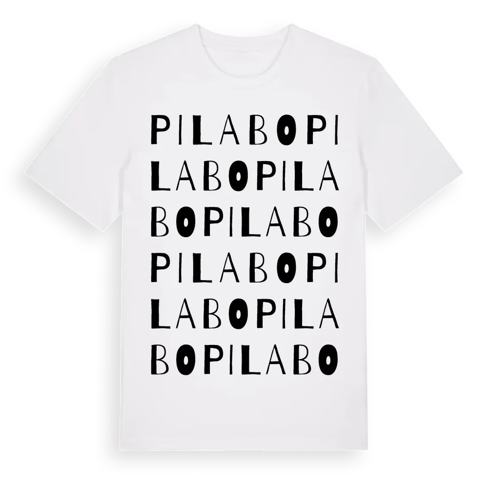 Pilabo ordlek t-shirt är inspirerad av Pilabo i Örebro län, Sverige. Tröjan är designad för dig som har en speciell koppling till platsen – oavsett om du bor här, har rötterna här eller bara älskar Pilabo.