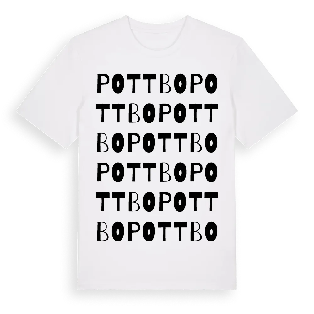 Pottbo ordlek t-shirt är inspirerad av Pottbo i Örebro län, Sverige. Tröjan är designad för dig som har en speciell koppling till platsen – oavsett om du bor här, har rötterna här eller bara älskar Pottbo.