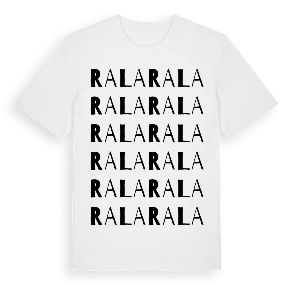 Rala ordlek t-shirt är inspirerad av Rala i Örebro län, Sverige. Tröjan är designad för dig som har en speciell koppling till platsen – oavsett om du bor här, har rötterna här eller bara älskar Rala.