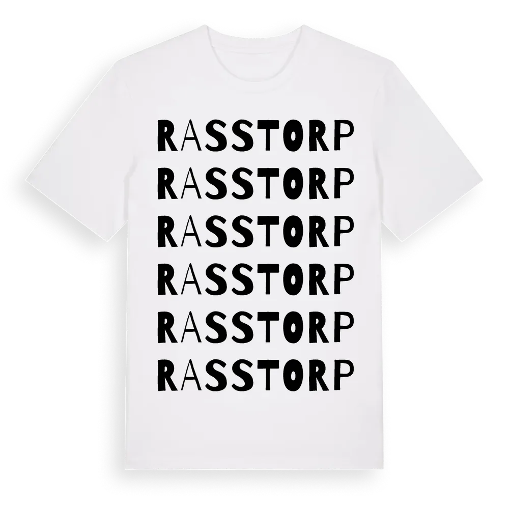 En ordlek byggd på Rasstorps namn. Subtilt och klurig – ett motiv som bara de som verkligen känner platsen fullt ut förstår. Premium bomull, unisex – från Rasstorp i Örebro län.