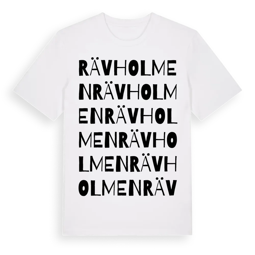 Rävholmen ordlek t-shirt är inspirerad av Rävholmen i Örebro län, Sverige. Tröjan är designad för dig som har en speciell koppling till platsen – oavsett om du bor här, har rötterna här eller bara älskar Rävholmen.