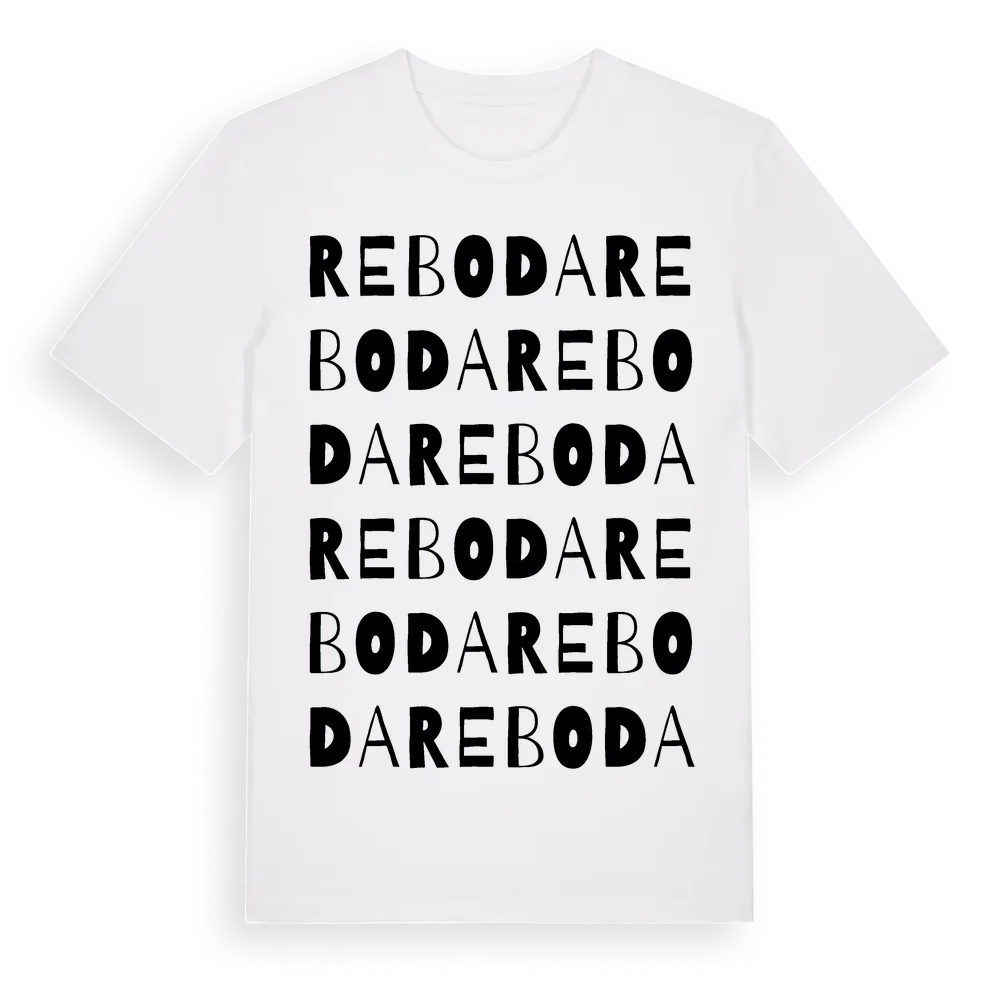 Reboda ordlek t-shirt är inspirerad av byn Reboda i Örebro län, Sverige. Tröjan är designad för dig som har en speciell koppling till platsen – oavsett om du bor här, har rötterna här eller bara älskar Reboda.