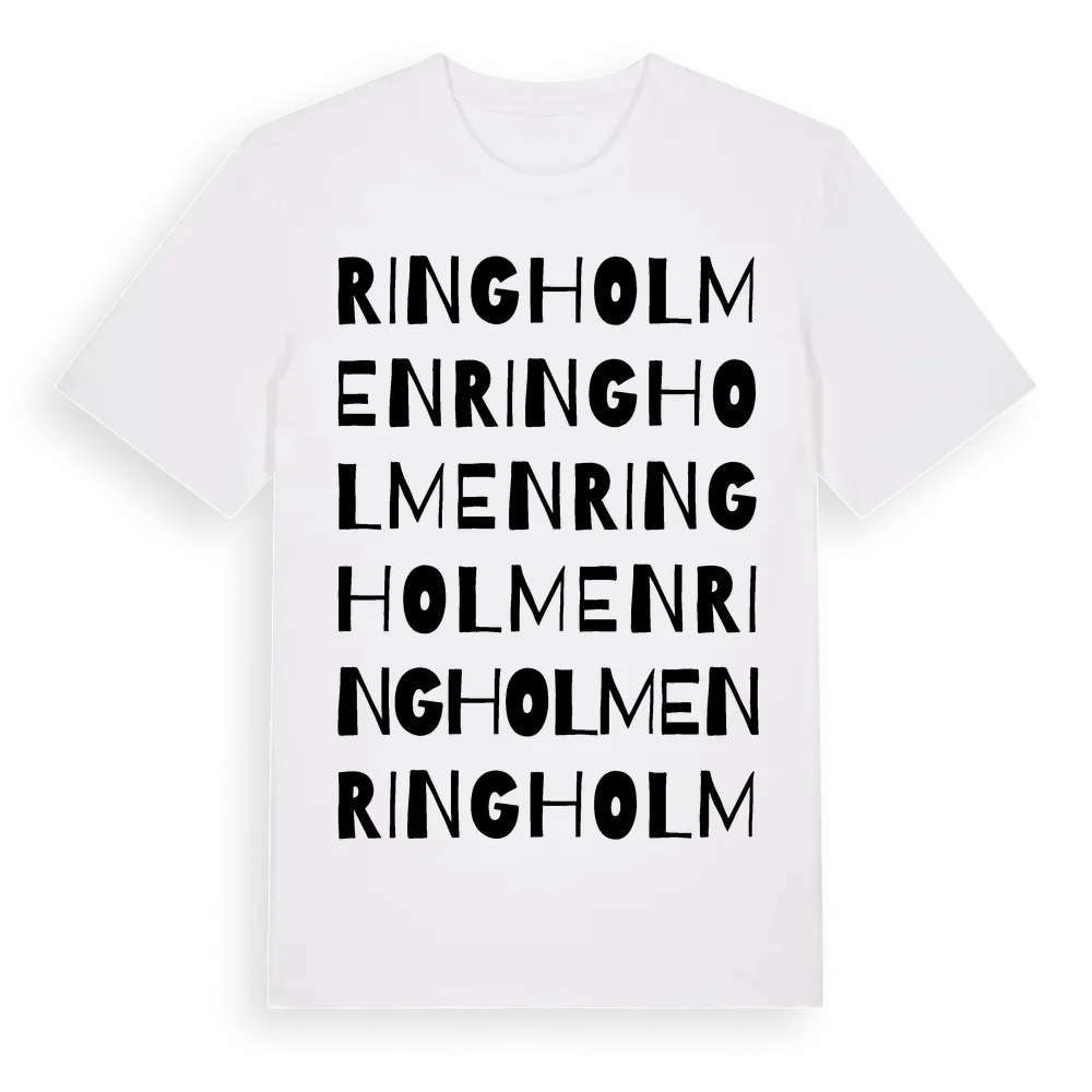 Ringholmen ordlek t-shirt är inspirerad av Ringholmen i Örebro län, Sverige. Tröjan är designad för dig som har en speciell koppling till platsen – oavsett om du bor här, har rötterna här eller bara älskar Ringholmen.