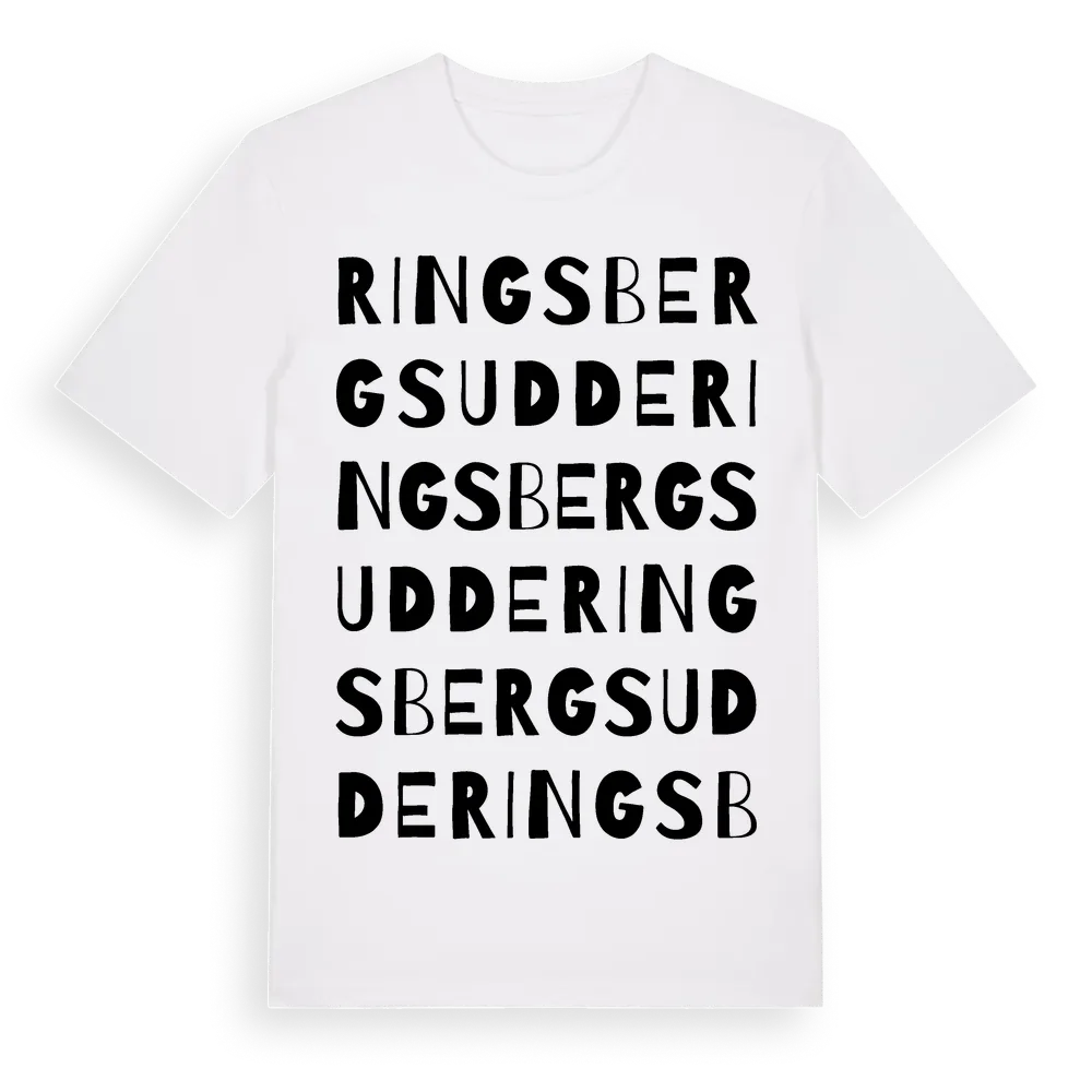 Ringsbergsudde ordlek t-shirt är inspirerad av Ringsbergsudde i Örebro län, Sverige. Tröjan är designad för dig som har en speciell koppling till platsen – oavsett om du bor här, har rötterna här eller bara älskar Ringsbergsudde.