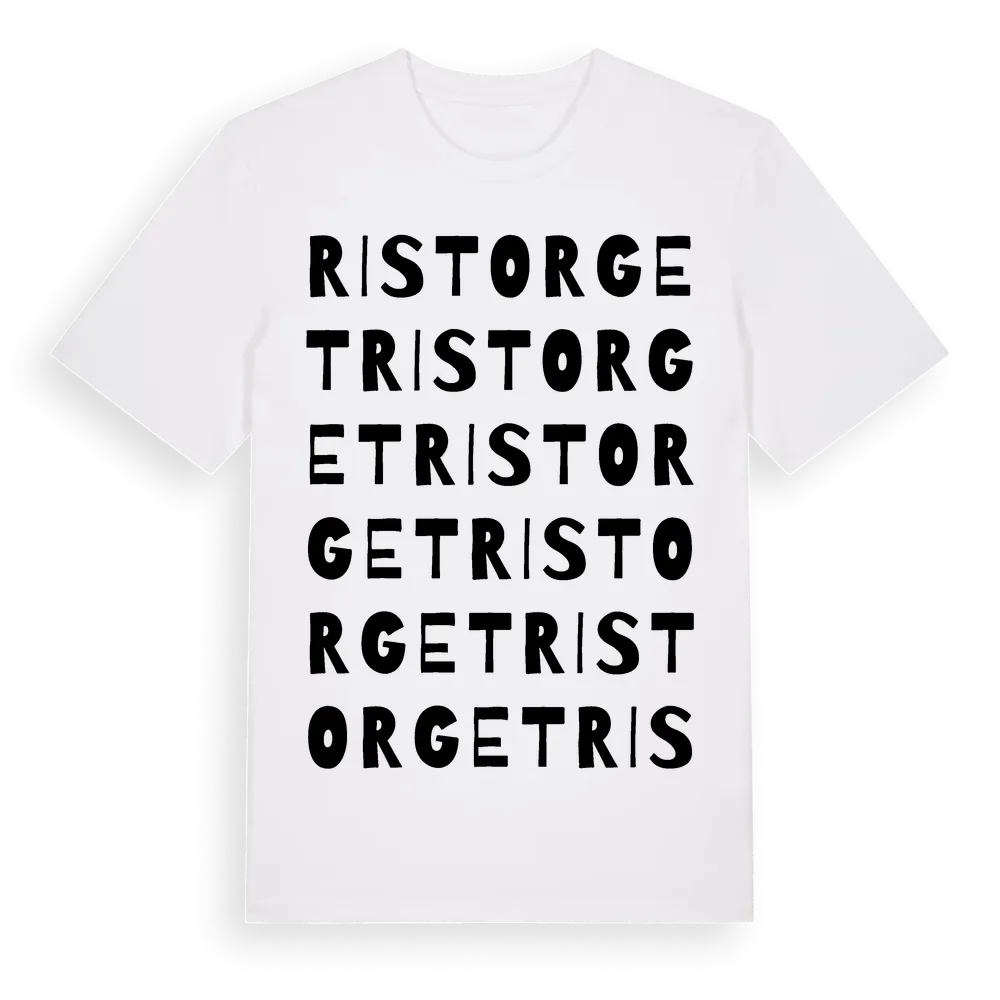 En ordlek byggd på Ristorgets namn. Subtilt och klurig – ett motiv som bara de som verkligen känner platsen fullt ut förstår. Premium bomull, unisex – från Ristorget i Örebro län.