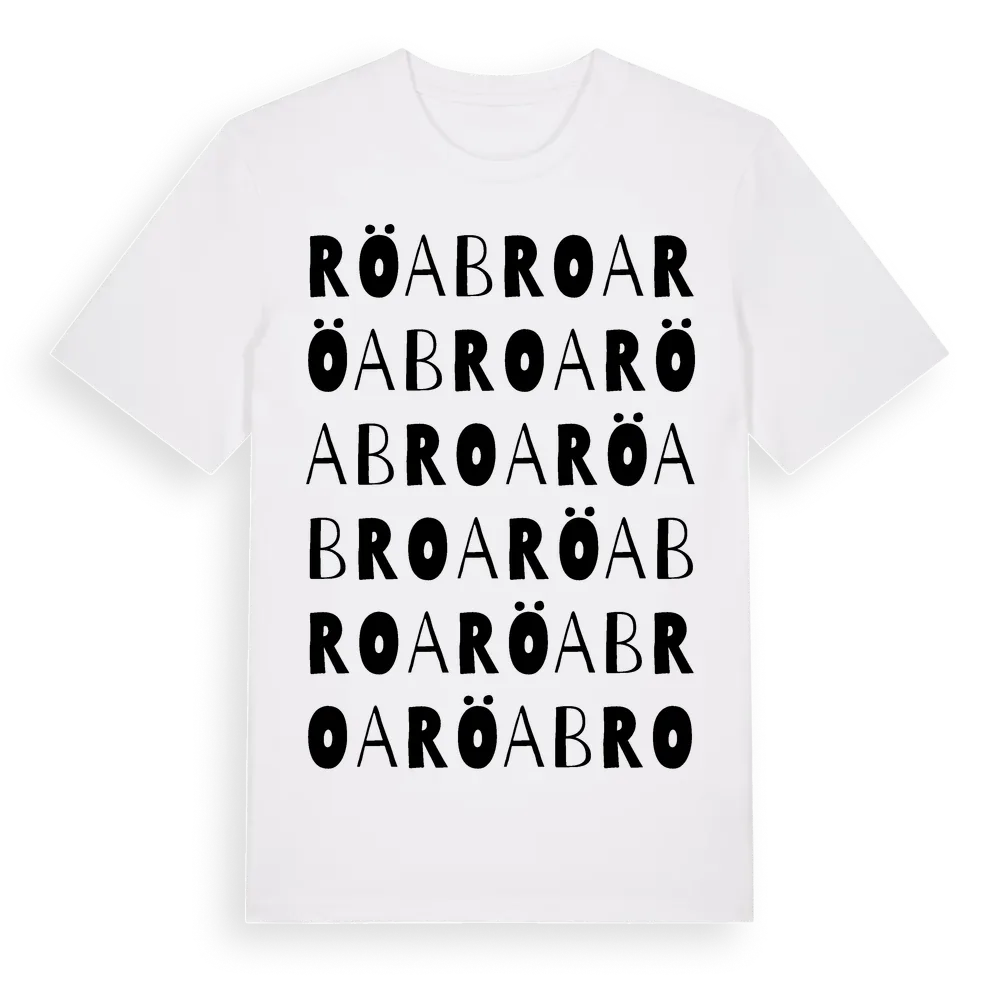 Röa Broa ordlek t-shirt är inspirerad av Röa Broa i Örebro län, Sverige. Tröjan är designad för dig som har en speciell koppling till platsen – oavsett om du bor här, har rötterna här eller bara älskar Röa Broa.