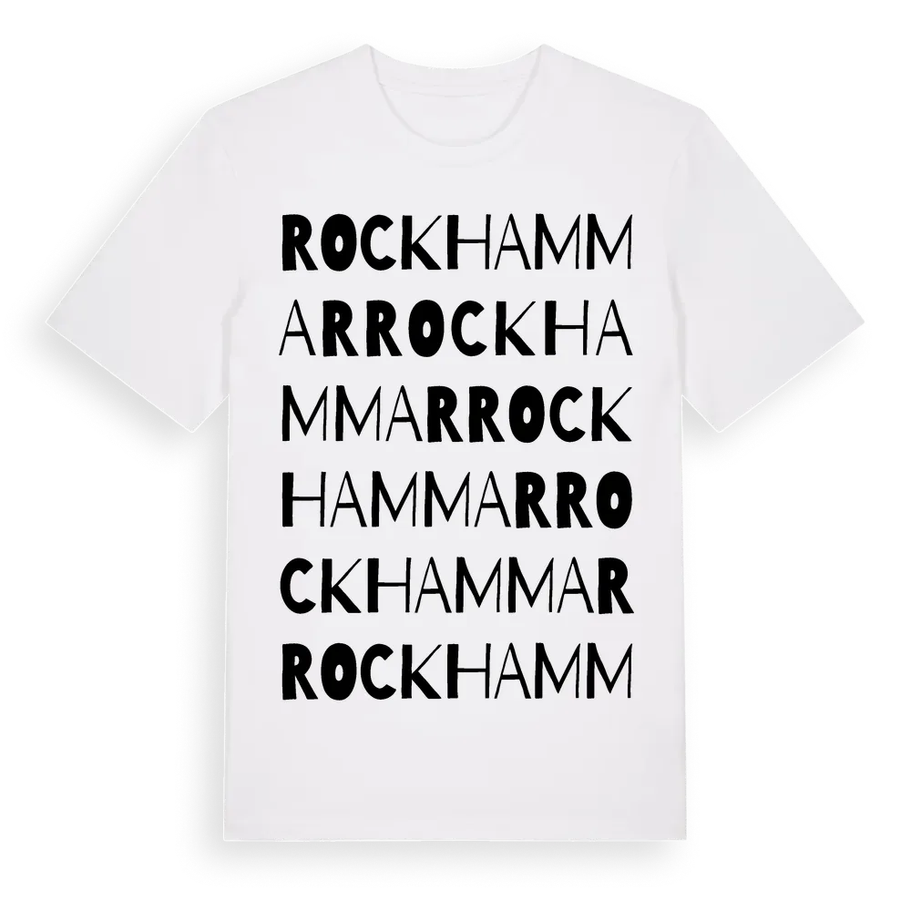 Rockhammar ordlek t-shirt är inspirerad av byn Rockhammar i Örebro län, Sverige. Tröjan är designad för dig som har en speciell koppling till platsen – oavsett om du bor här, har rötterna här eller bara älskar Rockhammar.