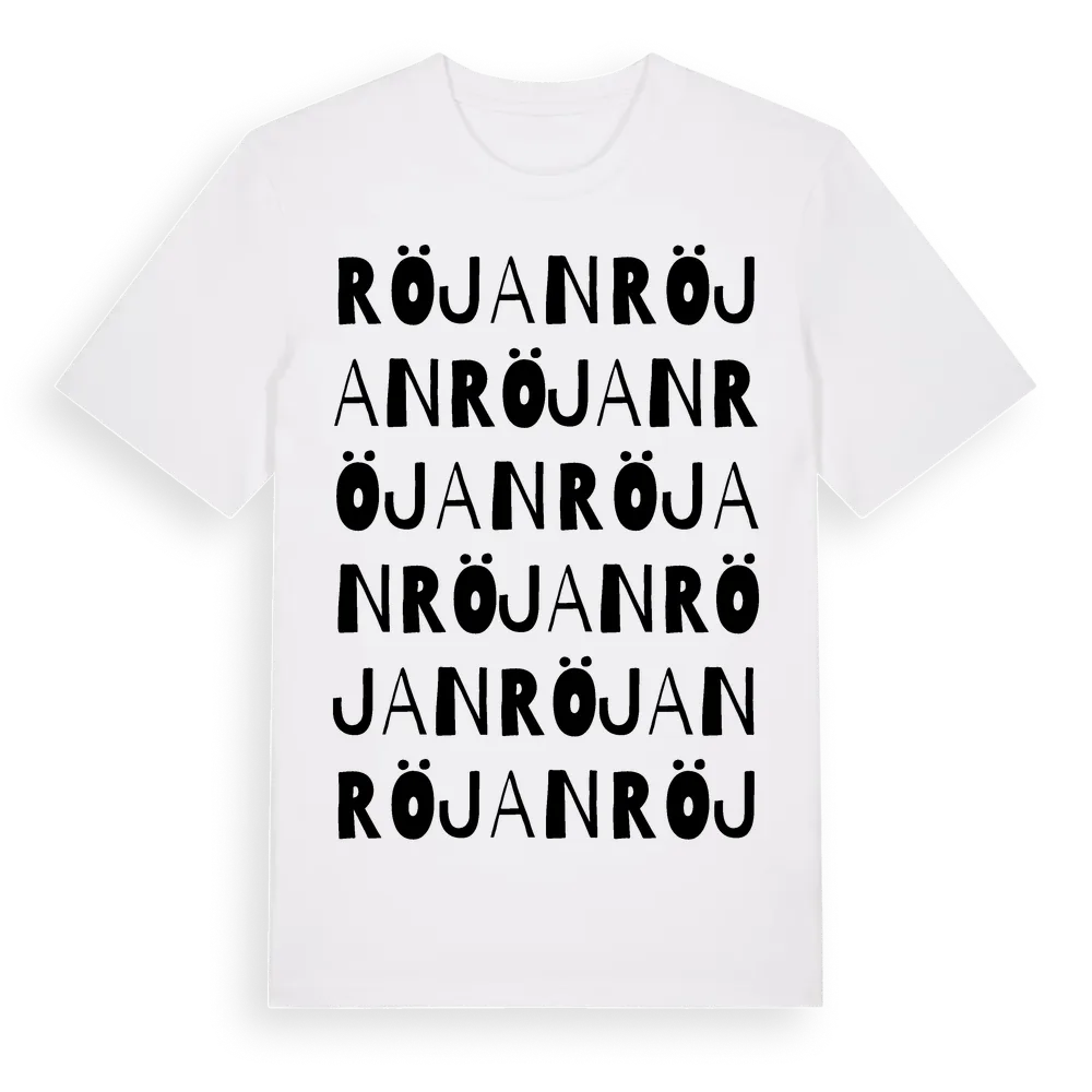 Röjan ordlek t-shirt är inspirerad av Röjan i Örebro län, Sverige. Tröjan är designad för dig som har en speciell koppling till platsen – oavsett om du bor här, har rötterna här eller bara älskar Röjan.