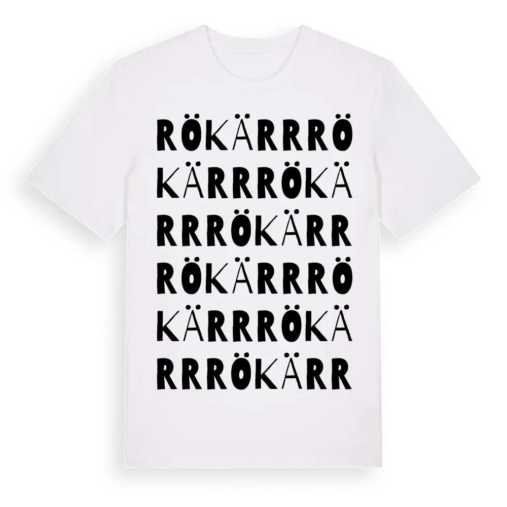 Rökärr ordlek t-shirt är inspirerad av Rökärr i Örebro län, Sverige. Tröjan är designad för dig som har en speciell koppling till platsen – oavsett om du bor här, har rötterna här eller bara älskar Rökärr.