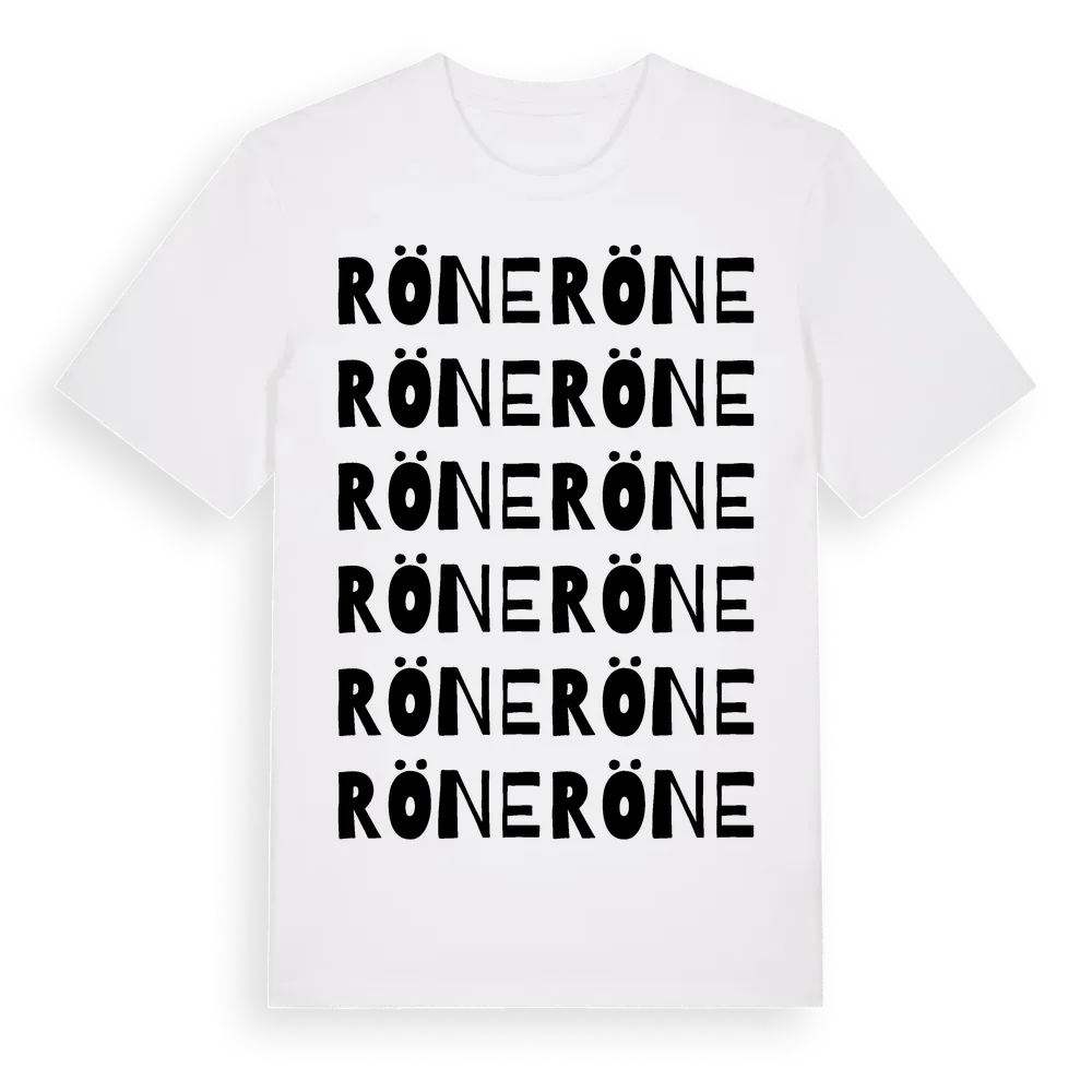 En ordlek byggd på Rönes namn. Subtilt och klurig – ett motiv som bara de som verkligen känner platsen fullt ut förstår. Premium bomull, unisex – från Röne i Örebro län.
