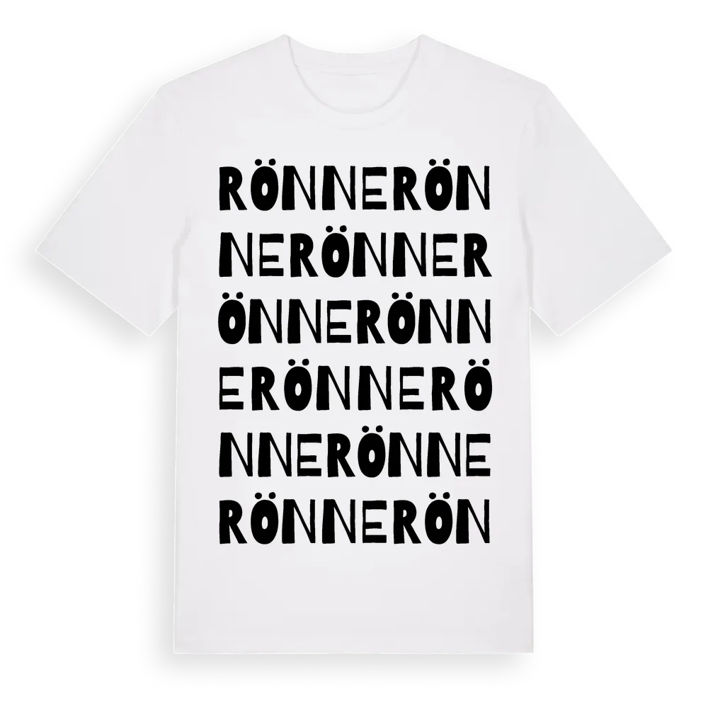 Rönne ordlek t-shirt är inspirerad av Rönne i Örebro län, Sverige. Tröjan är designad för dig som har en speciell koppling till platsen – oavsett om du bor här, har rötterna här eller bara älskar Rönne.