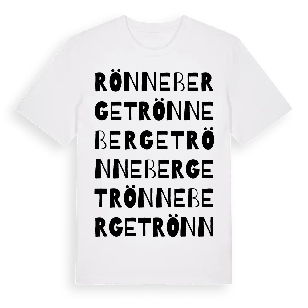 Rönneberget ordlek t-shirt är inspirerad av Rönneberget i Örebro län, Sverige. Tröjan är designad för dig som har en speciell koppling till platsen – oavsett om du bor här, har rötterna här eller bara älskar Rönneberget.