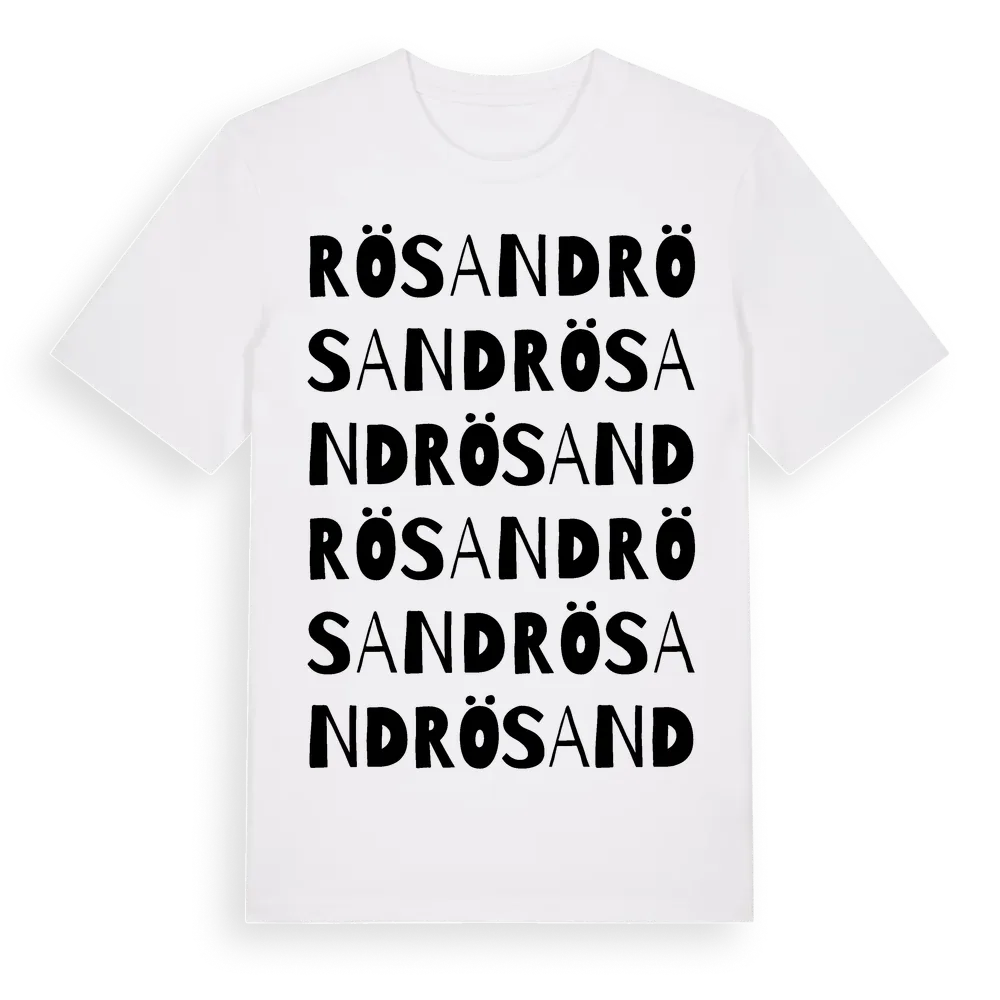 Rösand ordlek t-shirt är inspirerad av Rösand i Örebro län, Sverige. Tröjan är designad för dig som har en speciell koppling till platsen – oavsett om du bor här, har rötterna här eller bara älskar Rösand.