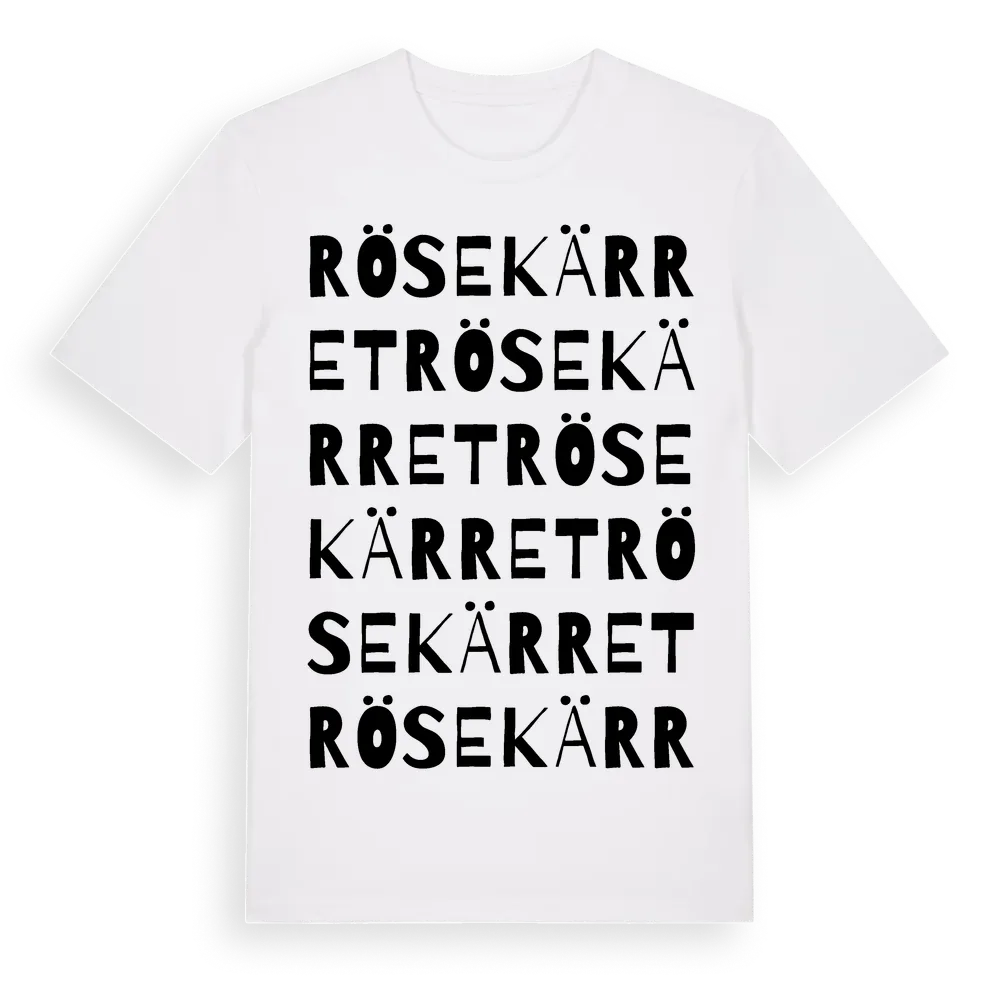 Rösekärret ordlek t-shirt är inspirerad av Rösekärret i Örebro län, Sverige. Tröjan är designad för dig som har en speciell koppling till platsen – oavsett om du bor här, har rötterna här eller bara älskar Rösekärret.