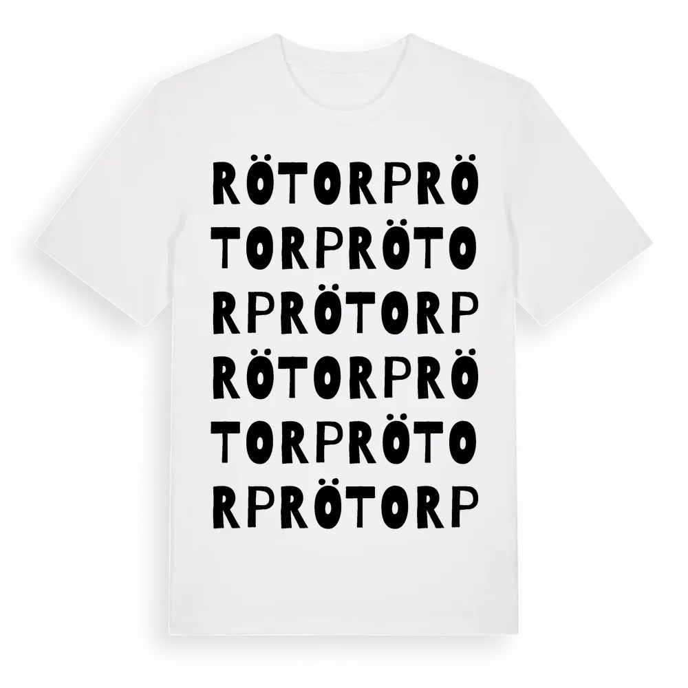 Rötorp ordlek t-shirt är inspirerad av Rötorp i Örebro län, Sverige. Tröjan är designad för dig som har en speciell koppling till platsen – oavsett om du bor här, har rötterna här eller bara älskar Rötorp.